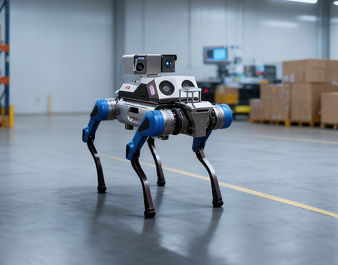 J9九游会机器人针对传统安保巡逻低效重复、高风险事件处置不足的痛点,提出创新应用,以四足机器人为核心,通过安保巡逻算法、本体和上装设备的协同,实现高效巡逻。